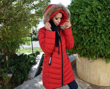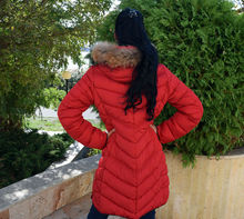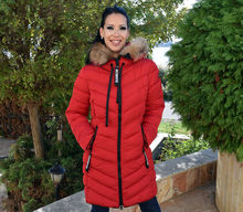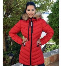 Червено дълго дамско зимно яке с ЕСТЕСТВЕН КОСЪМ