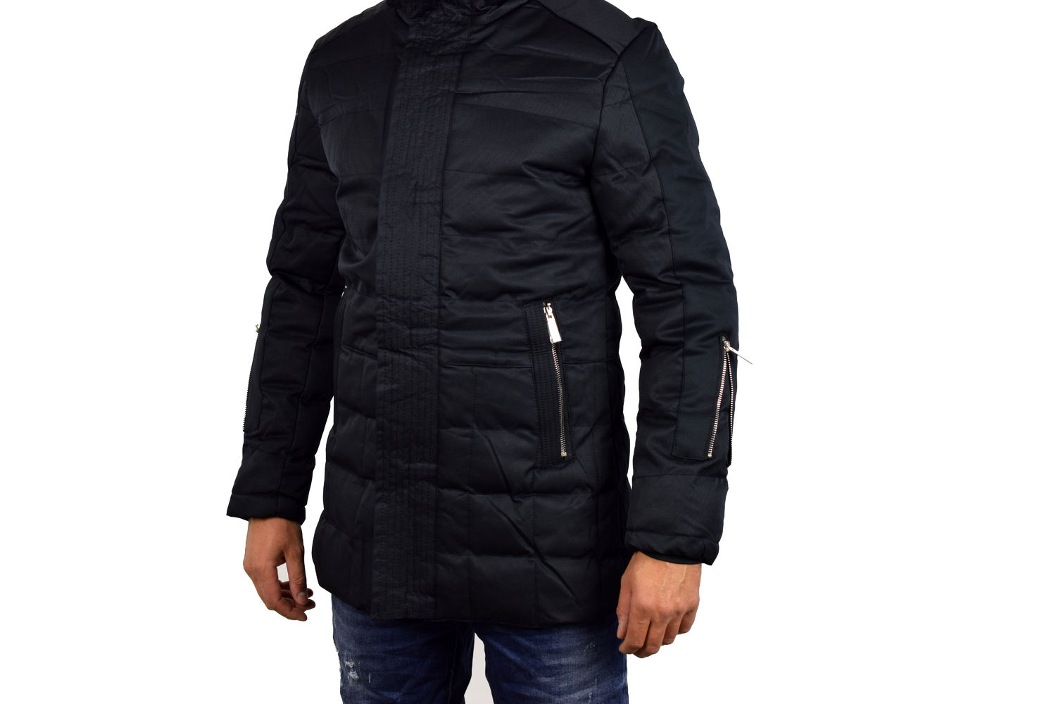 Тъмно синьо дълго зимно мъжко яке - 1131 в големи размери